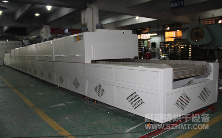 1、內(nèi)膽尺寸:烘干區(qū);長12000*凈高250*進(jìn)料寬1000mm,分6段獨立控溫,每段2000m;